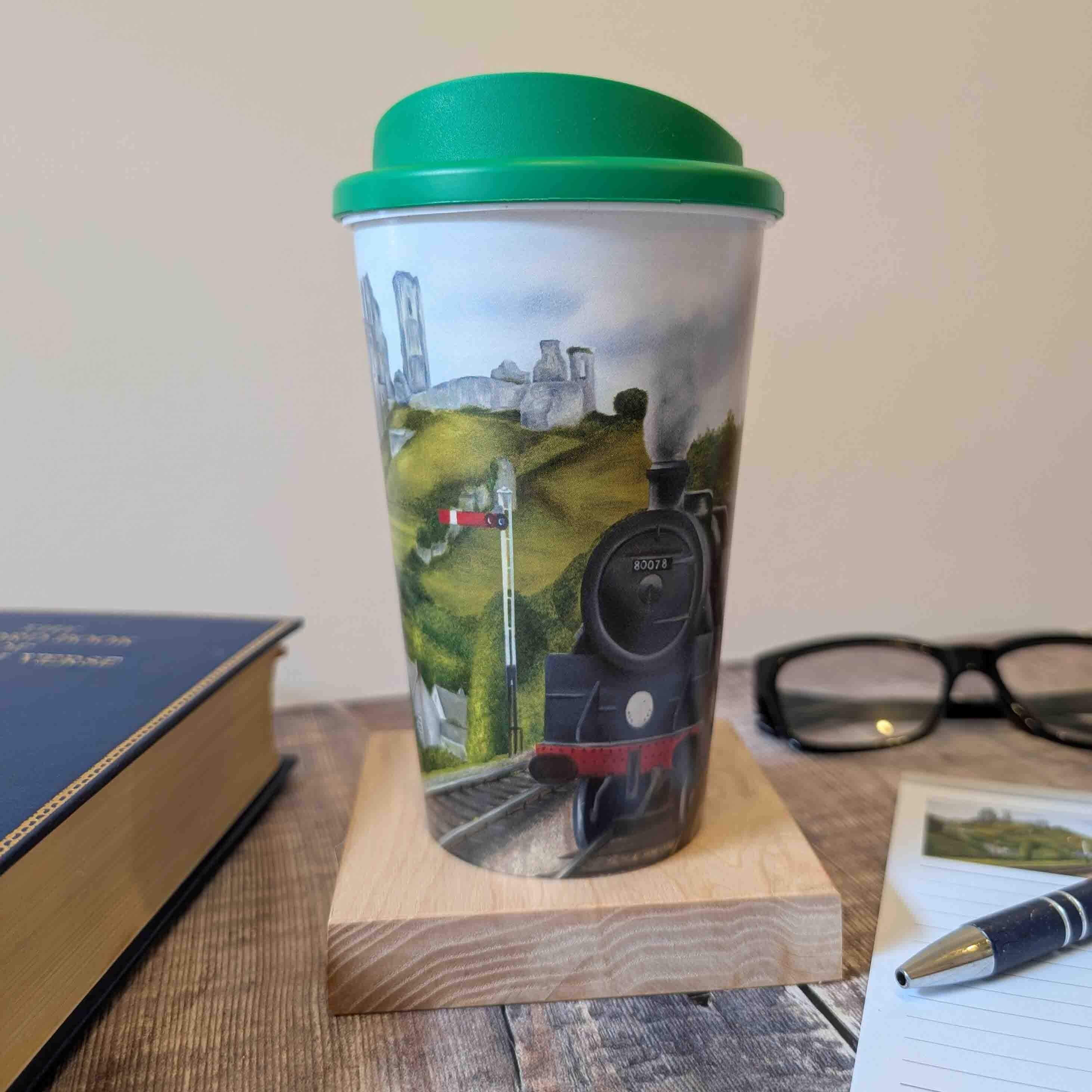 Travel Cup | Moo Selfie at Corfe Railway| Made from recycled plastic, thermal mug