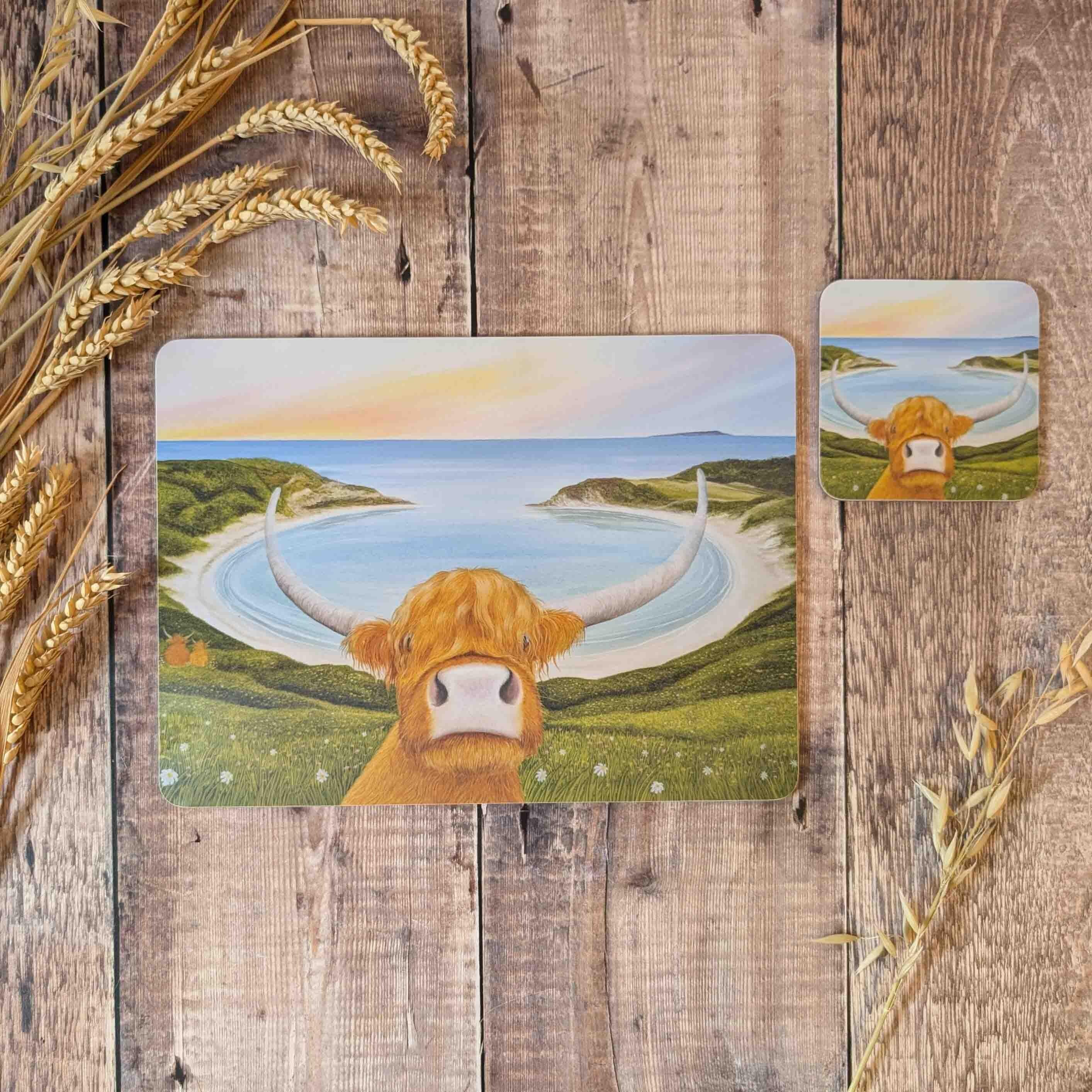 1 x Hairy Moo and the Herd at Lulworth Cove placemat & coaster